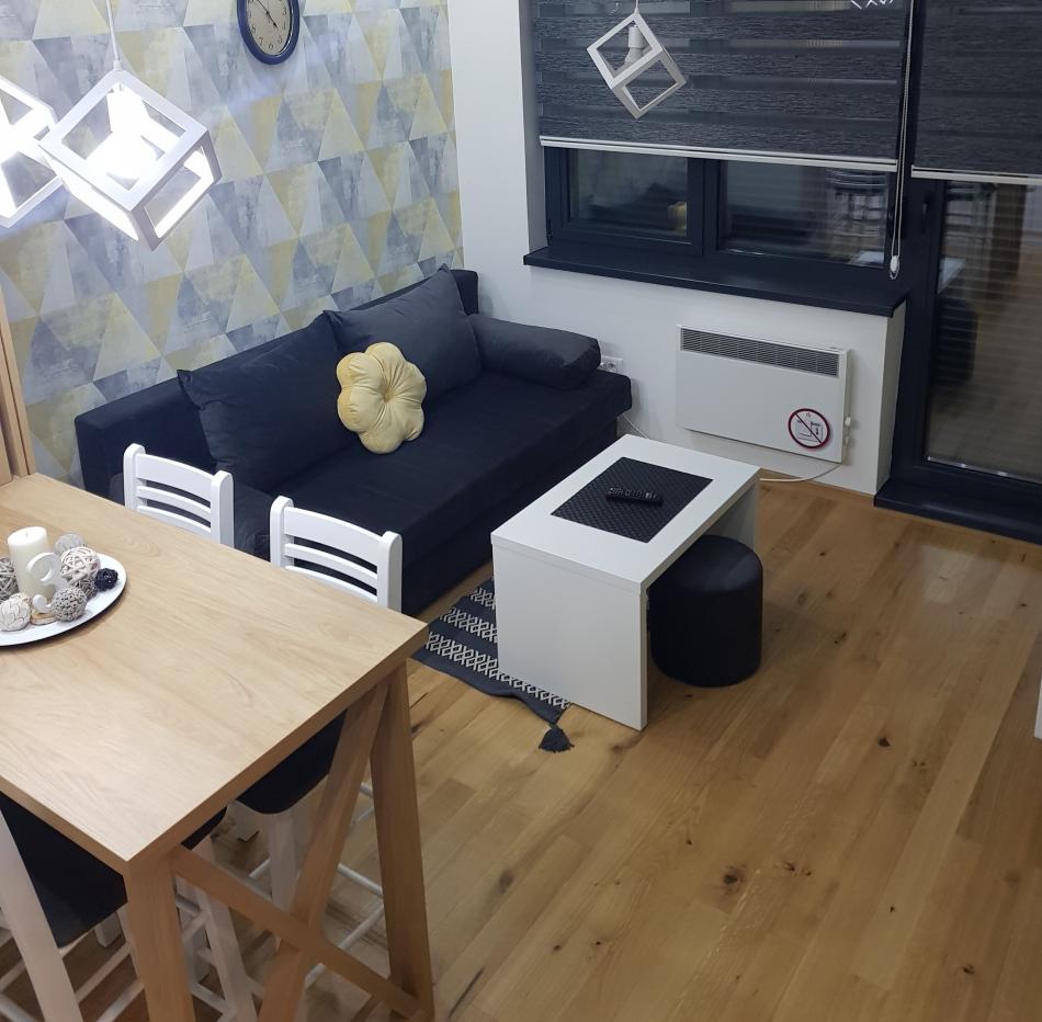 Ušuškan u borovoj šumi, na 800m od centra i 1000mnv, ovaj moderno i funkcionalno opremljen apartman sa odvojenom spavaćom sobom, može ugostiti do 4 osobe. Sadrži sve što je neophpdno za ugodan boravak. U okviru kompleksa se nalaze restoran Titova vila i Spa&Wellness centar Jadran.