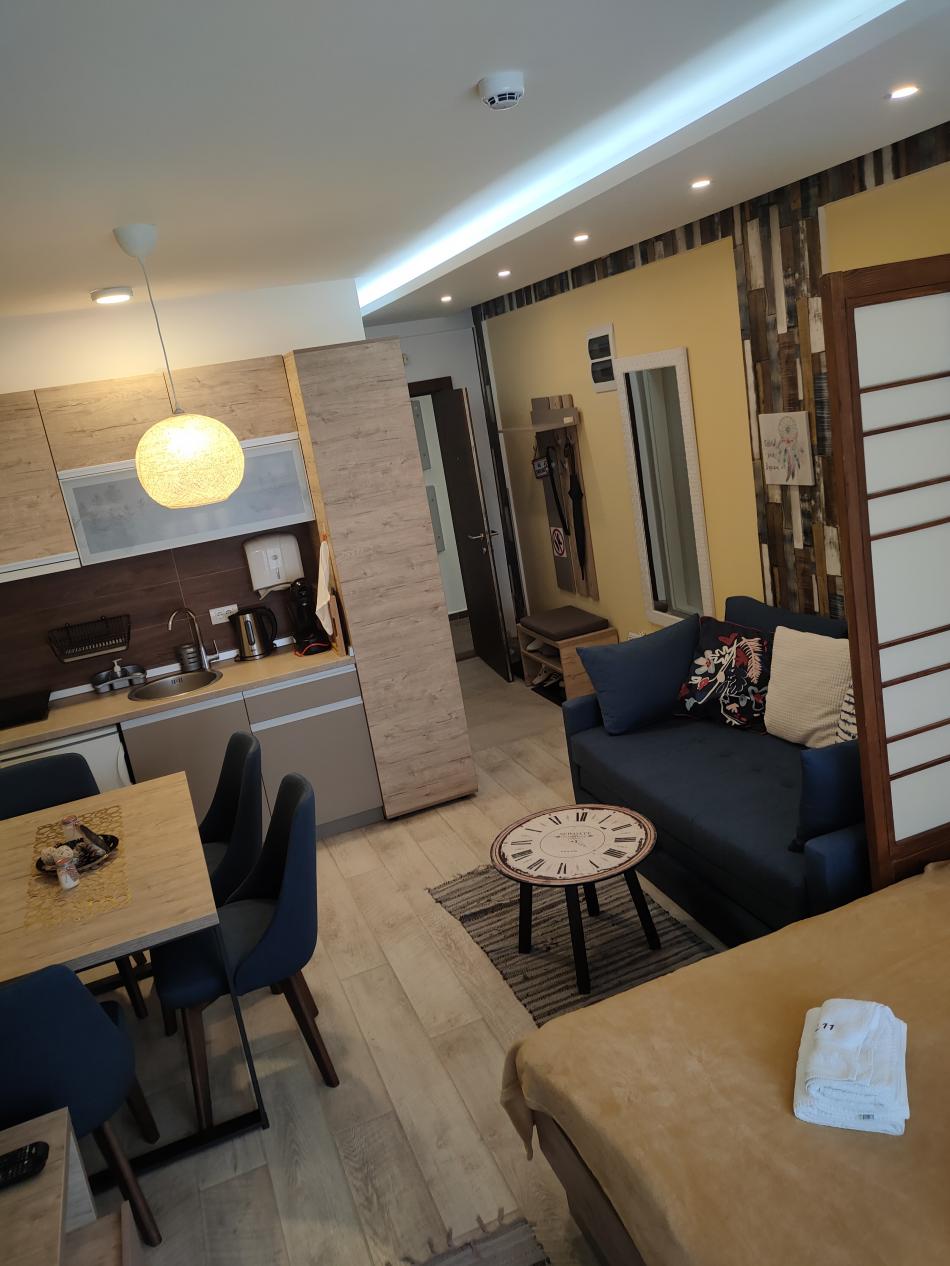 Nov i moderno opremljen studio apartman, sadrži sve što je neophodno za ugodan boravak do 4 osobe. U sklopu apartmana je prostrana terasa sa pogledom na planine, odakle se može uživati u nestvarnom zalasku sunca. Okolina je pogodna za skijanje i biciklizam. Ostava za ski opremu je u objektu, kao i zatvoreni bazen sa spa centrom, igralište za decu, restoran. Tokom letnjih meseci na raspolaganju je otvoreni bazen sa verovatno najlepšim pogledom na planini. Cena zavisi od perioda boravka.